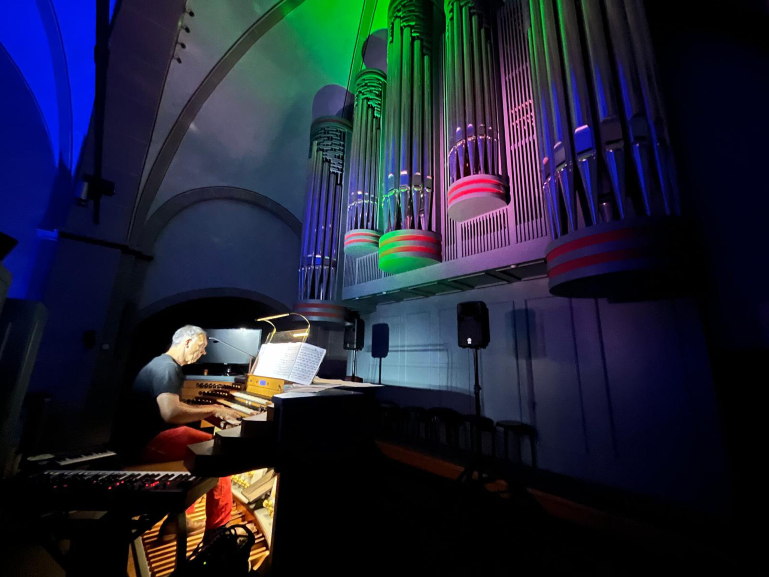 „Lichtorgel feat. Markus Stockhausen“ verbindet live gespielte Musik mit einem eigens entwickelten Licht- und Projektionskonzept: Die Orgel der Kirche wird durch fein abgestimmte LED-Strahler zur sogenannten Lichtorgel, die musikalische Impulse in rhythmische Lichteffekte übersetzt. Licht, Musik und Raum treten dabei in einen intensiven Dialog und schaffen ein immersives Konzerterlebnis, das alle Sinne anspricht.